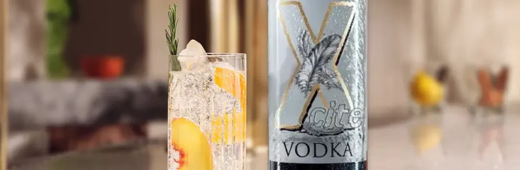 - Fill a chilled glass with cubed ice, then add Xcite® Vodka along with slices of white peach and fresh rosemary.